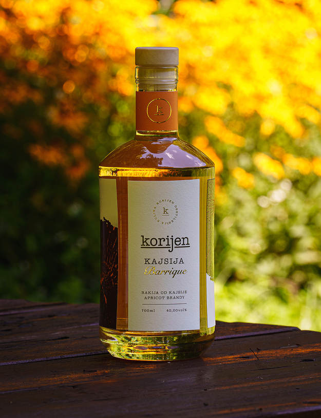 Nakon sazrijevanja u pažljivo paljenim bačvama slavonskog hrasta, Korijen kajsija barrique dobiva bogatu strukturu i dubinu, pritom zadržavajući svoj voćni karakter. Odležavanjem se razvijaju primarne note pečene marelice te sekundarni blago drvenasti tonovi te tercijarni tonovi meda, vanilije i začina.